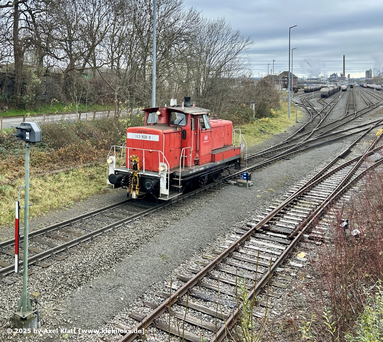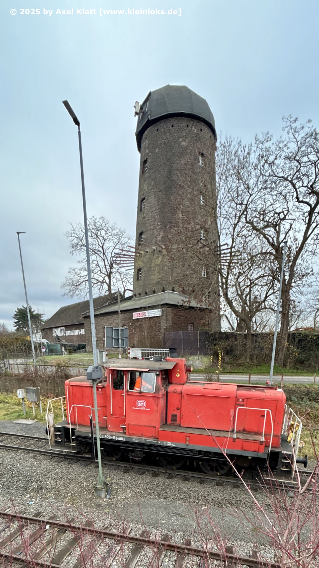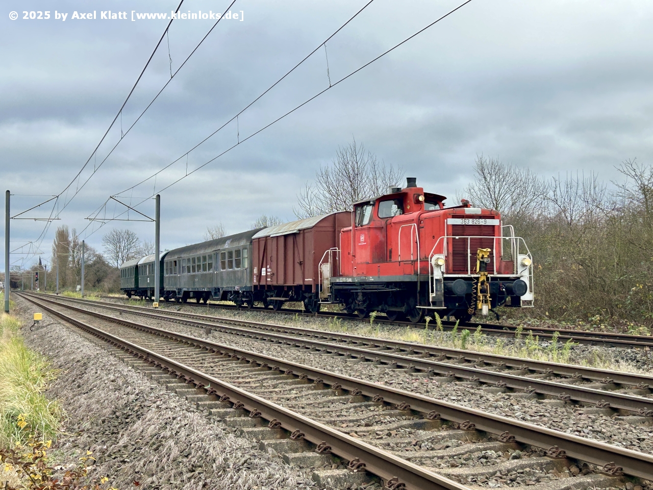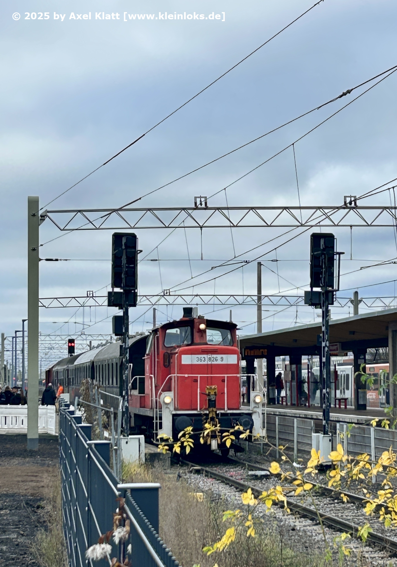 Am 13. und 14. Dezember veranstalteten die Köln-Bonner Eisenbahn-Freunde e.V. jeweils drei Sonderfahrten mit der 363 826 vor zwei Donnerbüchsen, einem Silberling und einem Güterzugwagen vom Bahnhof Wesseling aus zum Godorfer Hafen.