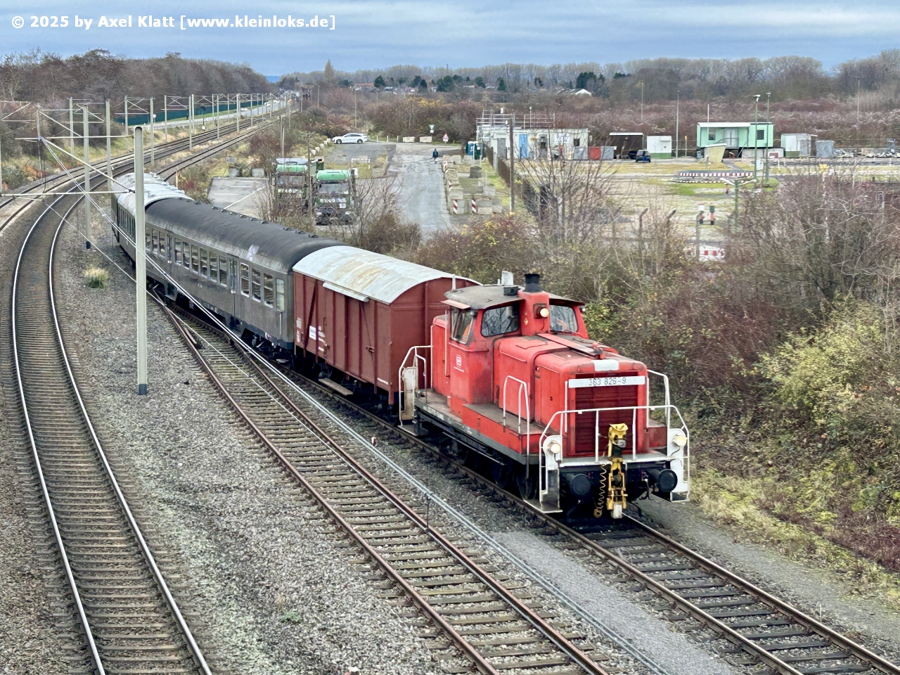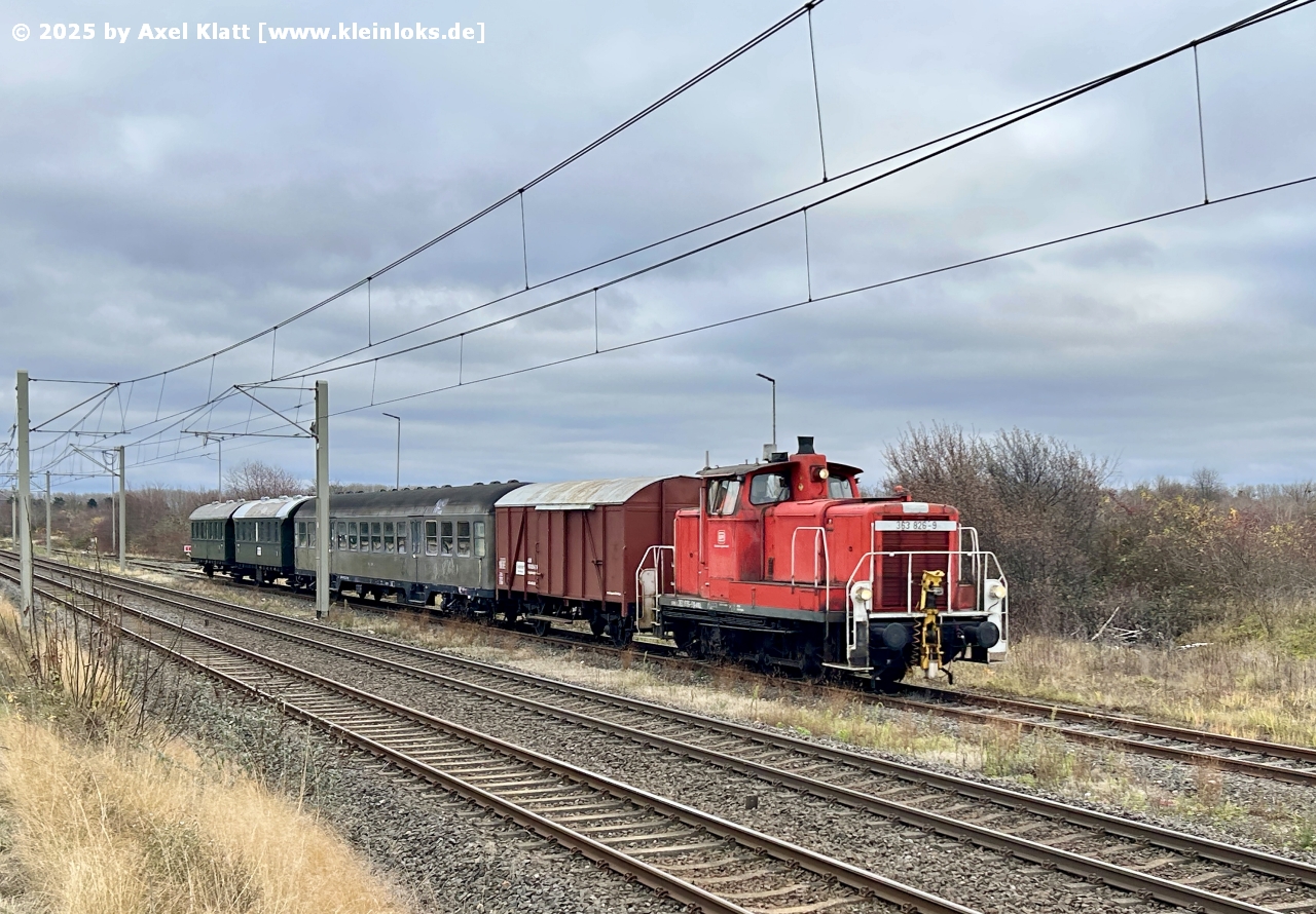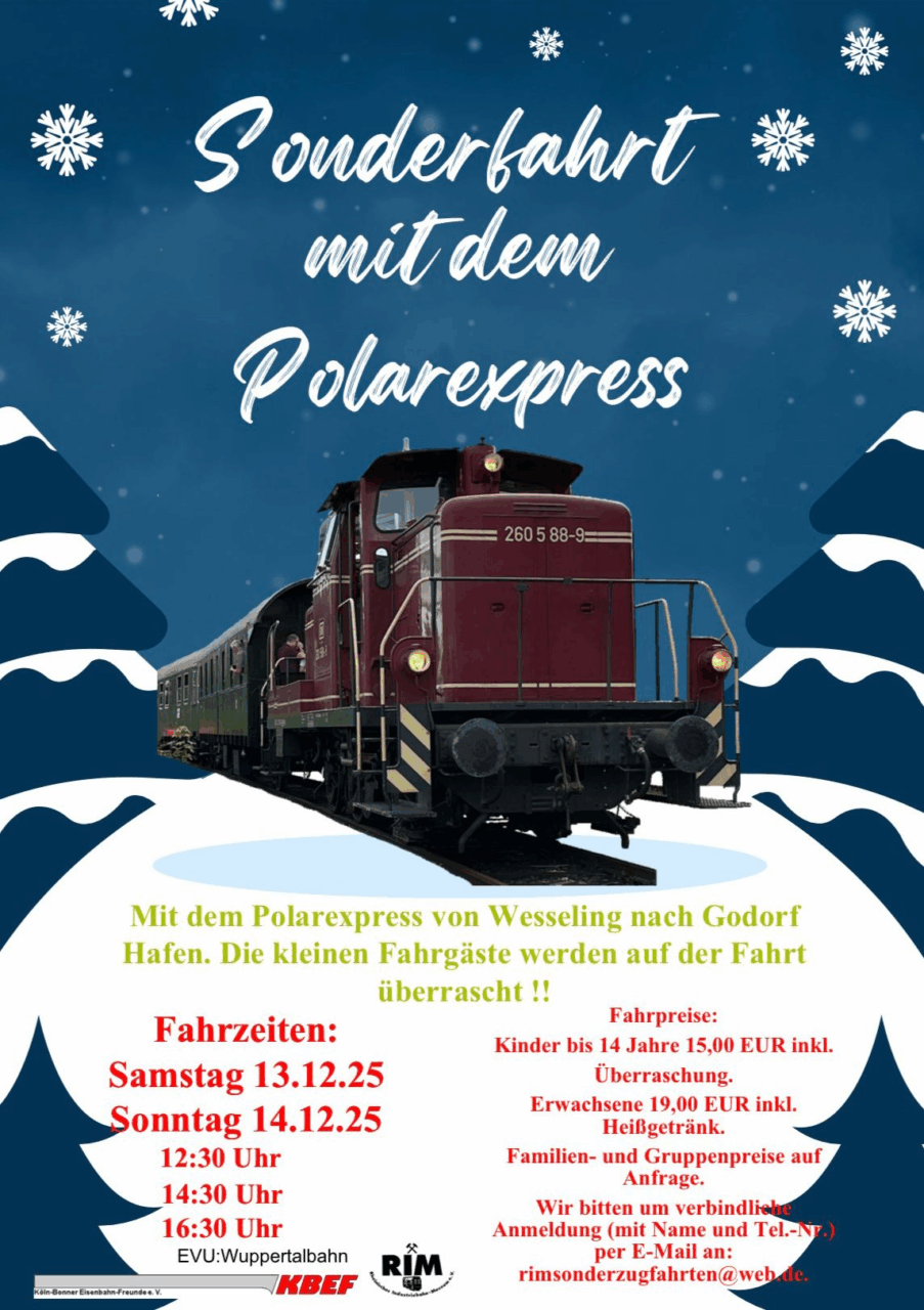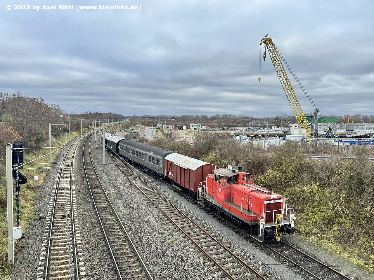 Am 13. und 14. Dezember veranstalteten die Köln-Bonner Eisenbahn-Freunde e.V. jeweils drei Sonderfahrten mit der 363 826 vor zwei Donnerbüchsen, einem Silberling und einem Güterzugwagen vom Bahnhof Wesseling aus zum Godorfer Hafen.